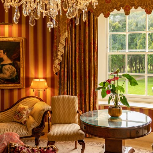 Admire the fabulous views overlooking the long, sweeping driveway from the large sitting area. Indulge in room service, ready to tend to your every need. Watch your favourite shows on the flat-screen TV, listen to music on the digital radio, or dine at the table in your own private dining area. Sit back and relax into the snug warmth of the luxury, soft bathrobes and slippers, before venturing to the beautifully designed bathroom.