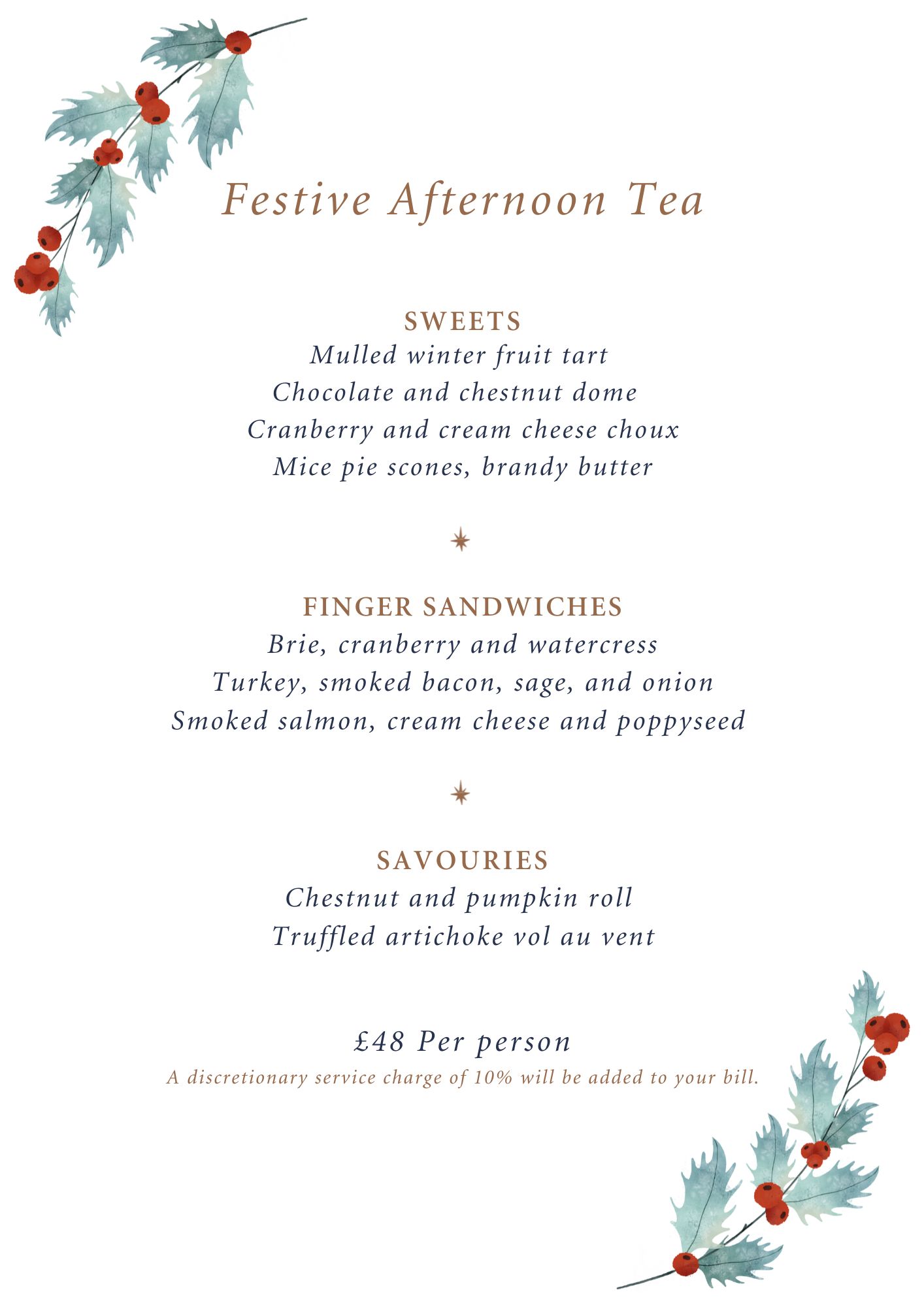 £48 per person. *Add a glass of Champagne from £18 per person.