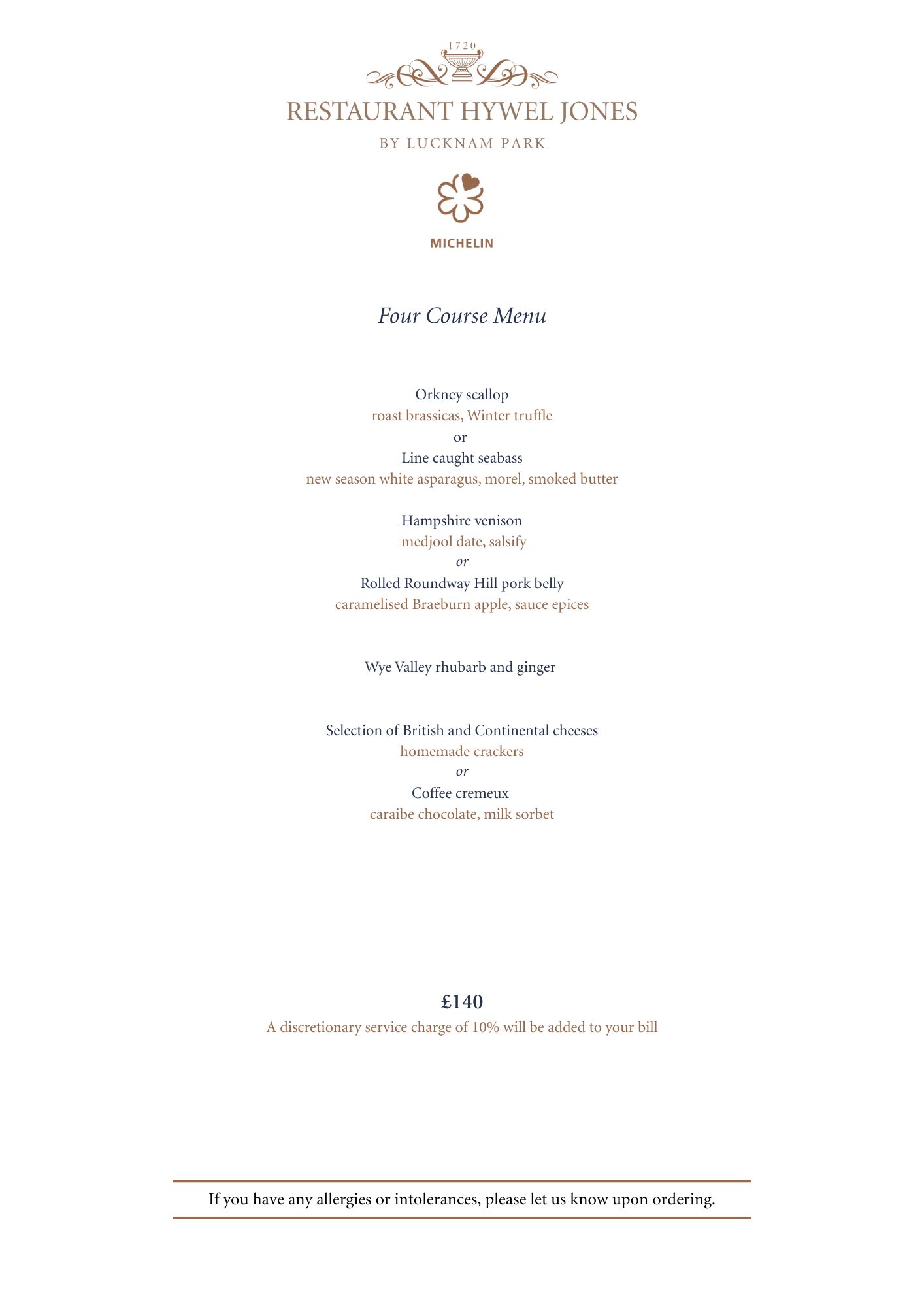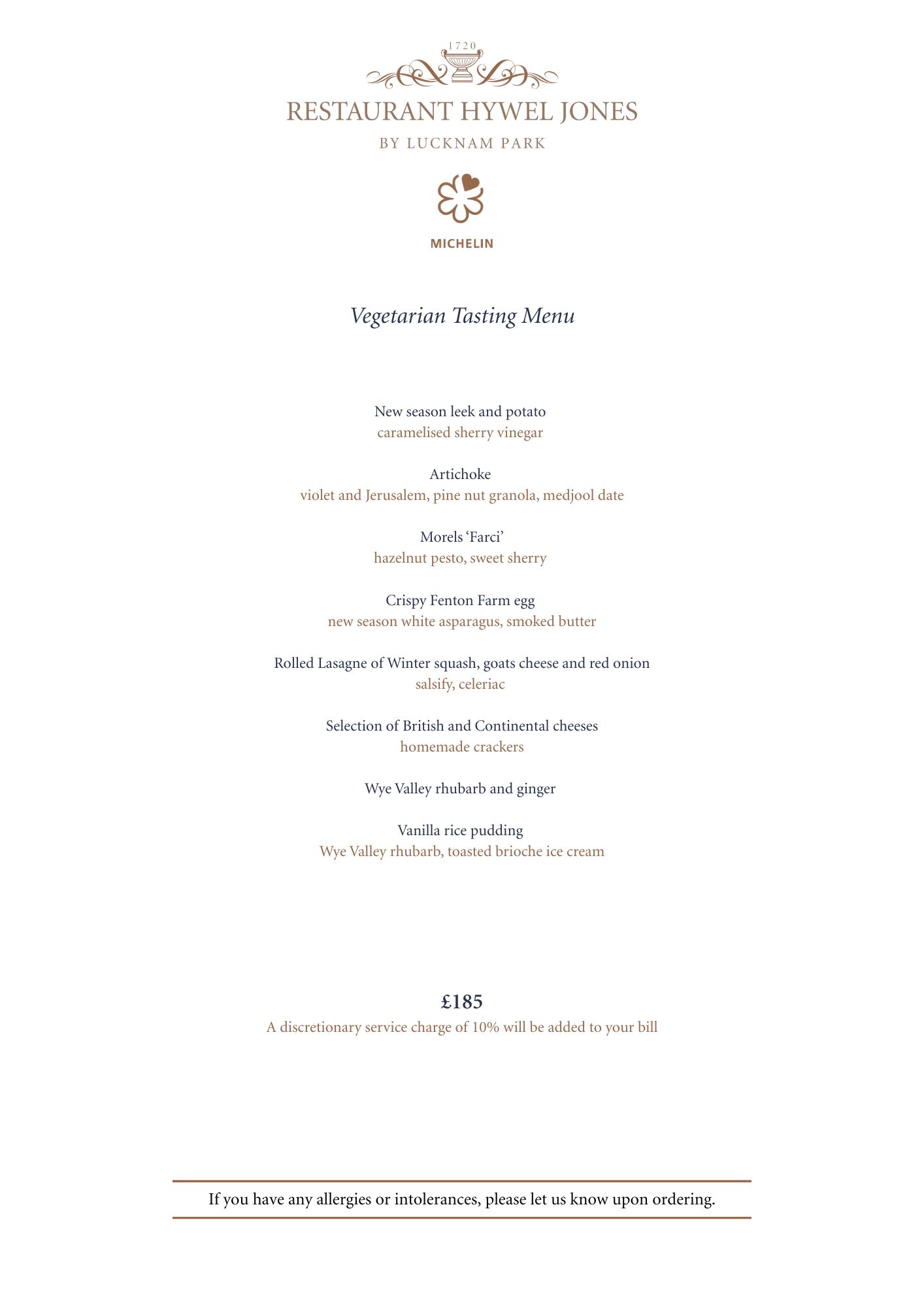Please advise us of any dietary requirements at the time of booking.